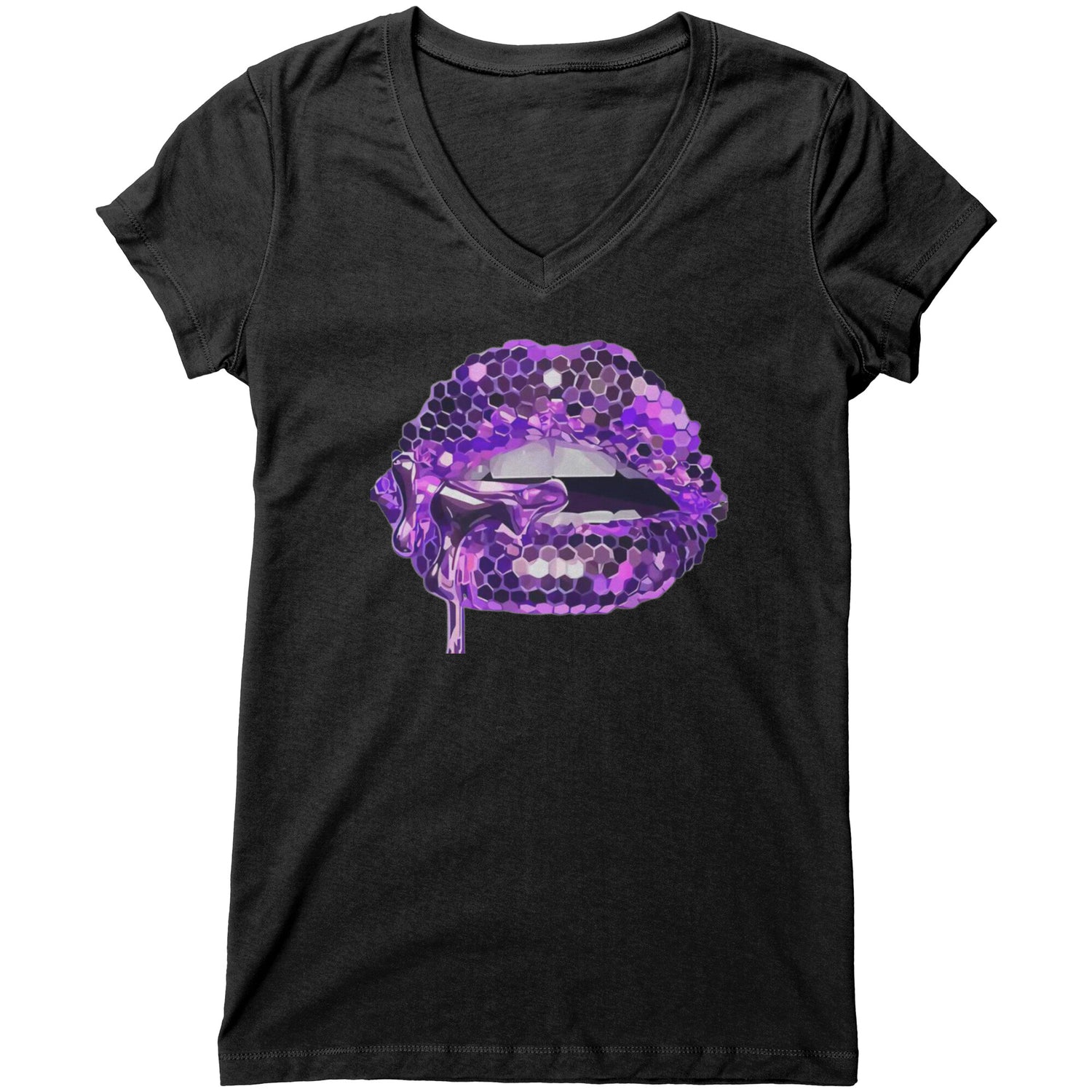 Part of our new relaxed collection, this womens v neck jersey t shirt is available in a variety of fabrications and features short sleeves and a new modern, relaxed fit for effortless style. Purple Lip V-neck Shirt