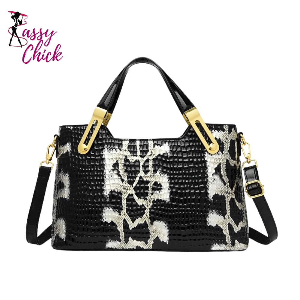 Retro Crocodile Pattern Crossbody Bag Sassy Chick Logo